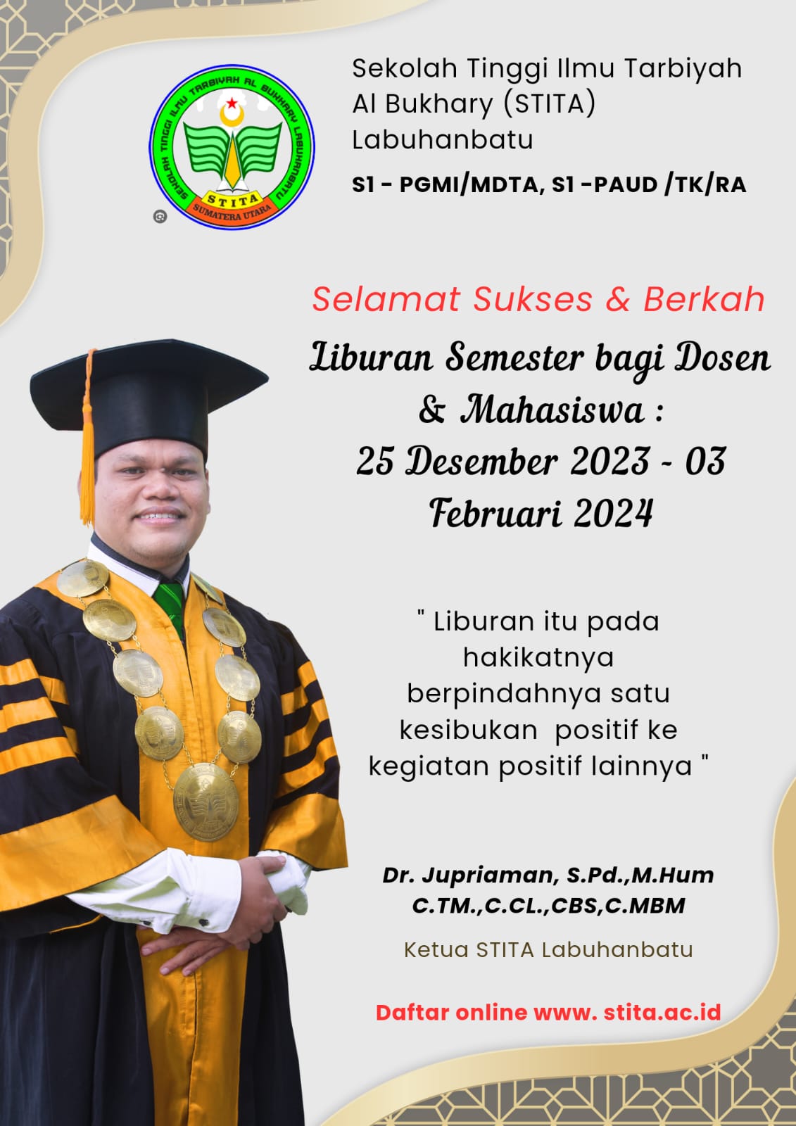 Info Libur Ujian Akhir Semester TA. 2023-2024 bagi Dosen dan Mahasiswa STITA Labuhanbatu ; daro tang...